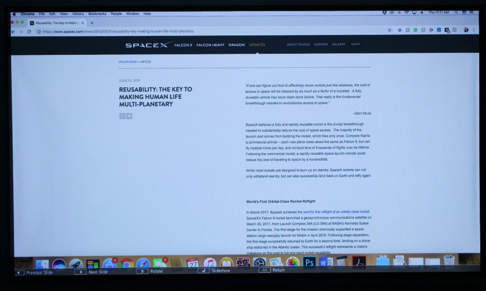 The L400U has almost everything you need for business and higher education. It supports Crestron control, Miracast, wired networking, and optional wireless networking with a separate module. It also comes with plenty of inputs, including dual HDMI, VGA, and audio-in mini jacks. Plus, it features a DICOM SIM color mode for medical use.